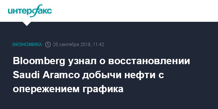 Ранее Saudi Aramco заявляла, что рассчитывает восстановить добычу до нормального уровня - 12 млн б/с - к ноябрю.