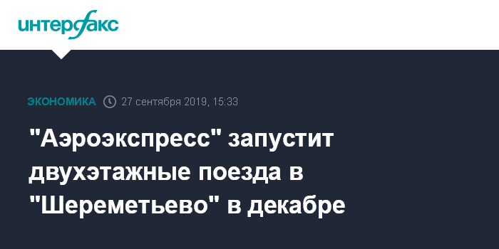 Москва. 27 сентября. INTERFAX.RU - В конце ноября или начале декабря 2019 года между аэропортом "Шереметьево" и Белорусским вокзалом пустят двухэтажные поезда, заявил замгендиректора "Аэроэкспресса" Михаил Ковальский.