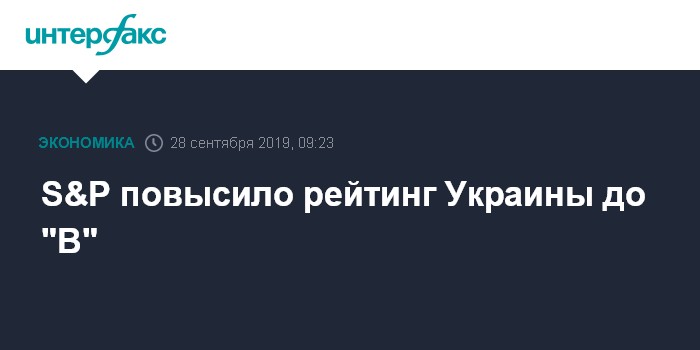 Москва. 28 сентября. INTERFAX.RU - Международное рейтинговое агентство S&P Global Ratings повысило долгосрочные суверенные рейтинги Украины в иностранной и национальной валюте с "B-" до "B", а рейтинги по национальной шкале на Украине - с "uaBBB" до "uaA", подтвердив краткосрочные рейтинги на уровне "B".