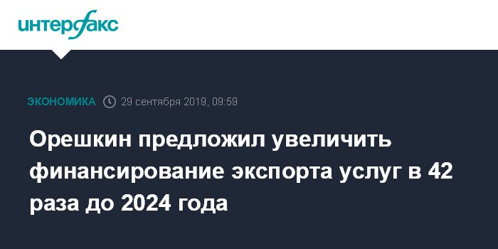 Орешкин предложил увеличить финансирование экспорта услуг в 42 раза до 2024 года
