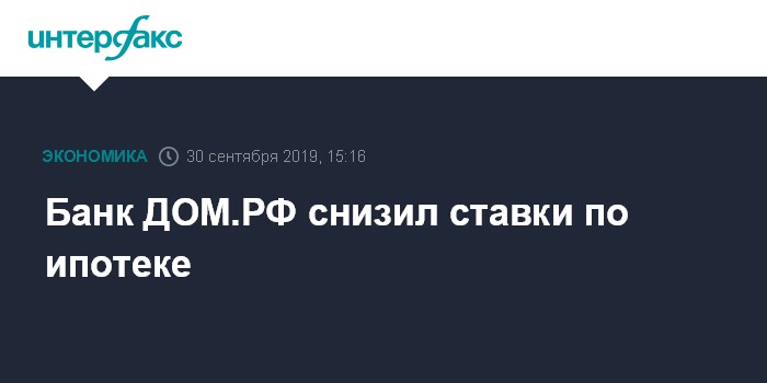 Банк ДОМ.РФ отмечает, что он первым на рынке приводит ставку по ипотеке в соответствие с целевыми для 2019 года значениями в рамках нацпроекта "Жилье и городская среда".