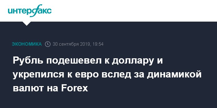 Рубль подешевел к доллару и укрепился к евро вслед за динамикой валют на Forex