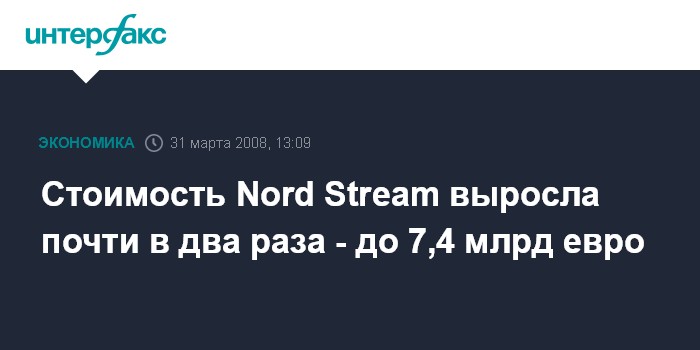 Стоимость Nord Stream выросла почти в два раза - до 7,4 млрд евро