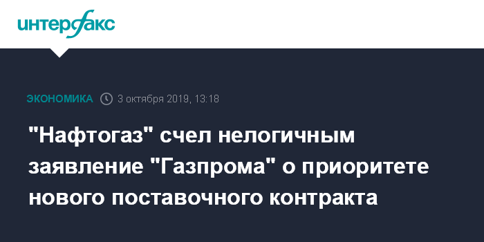 "Нафтогаз" счел нелогичным заявление "Газпрома" о приоритете нового поставочного контракта