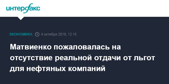 Матвиенко пожаловалась на отсутствие реальной отдачи от льгот для нефтяных компаний