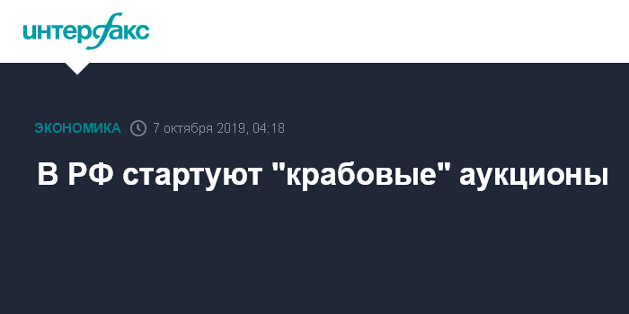 Как сообщалось, с 7 по 11 октября будут проведены аукционы по продаже квот на вылов крабов для Дальнего Востока, 14-15 октября - для Северного бассейна. Всего на аукцион выставляется 41 лот. Их начальная стоимость составляет 125,5 млрд рублей.