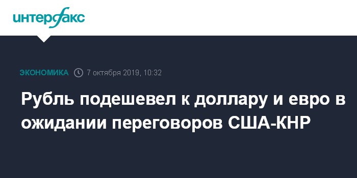 Как отмечают эксперты "Интерфакс-ЦЭА", рубль снижается к доллару и евро на старте торгов новой недели, внимание участников рынка вновь переключилось на ситуацию вокруг торгового конфликта Вашингтона и Пекина. Трейдеры возлагали надежды на переговоры США и Китая, возобновляющиеся на этой неделе после длившегося несколько месяцев перерыва.
