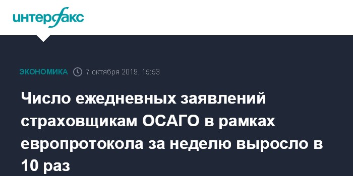 Юргенс напомнил, что с начала октября вступило в силу положение закона об ОСАГО, которое позволяет оформлять небольшие ДТП без вызова представителей полиции на полную сумму имущественного возмещения в ОСАГО - в пределах 400 тыс. рублей во всех регионах РФ. До этой даты в объеме полного лимита европротокол действовал только в Москве и Петербурге, Московской и Ленинградской областях. При этом оформление по европротоколу возможно только для водителей, использующих специальное бесплатное мобильное приложение РСА, которое обеспечивает некорректируемую информацию с места ДТП для страховщика, производящего выплаты.