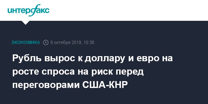 Как отмечают эксперты "Интерфакс-ЦЭА", рубль укрепляется к доллару и евро на старте вторника на фоне роста интереса глобальных инвесторов к рисковым активам с учетом появления некоторых признаков оптимизма в отношении торговых переговоров США и Китая. Переговоры возобновятся в четверг после длившегося несколько месяцев перерыва.