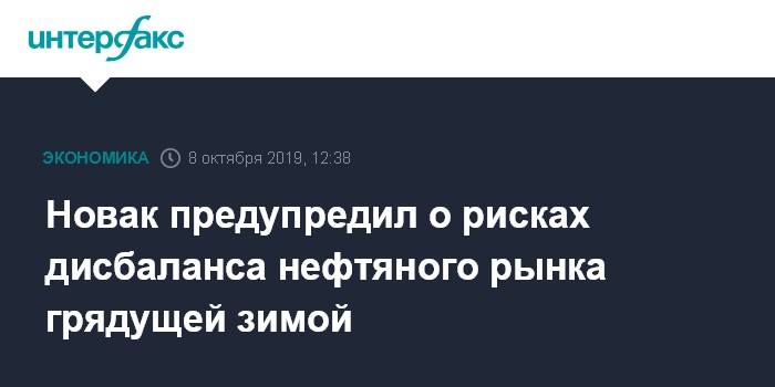 Москва. 8 октября. INTERFAX.RU - Рынок нефти стабилен в настоящее время, однако существуют риски его дисбаланса грядущей зимой, сообщил министр энергетики России Александр Новак в интервью телеканалу "Россия-24".