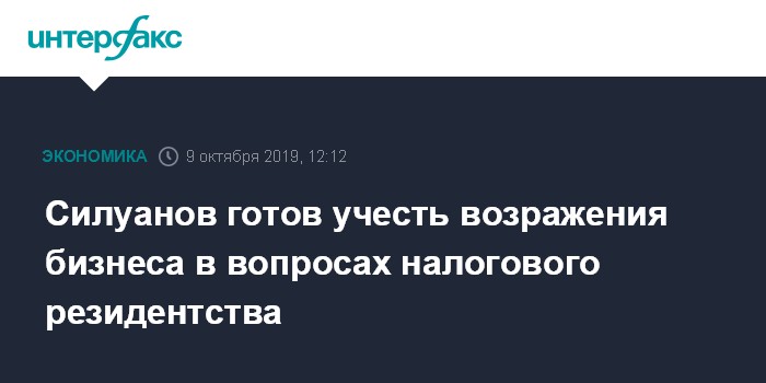 Москва. 9 октября. INTERFAX.RU - Минфин готов отложить реформу налогового резидентства, если ее не поддержит крупный бизнес, сказал на заседании правления РСПП глава ведомства Антон Силуанов. Ранее министерство предложило сократить с 180 до 90 дней срок, который бизнесмен должен проводить в России, чтобы считаться ее налоговым резидентом.