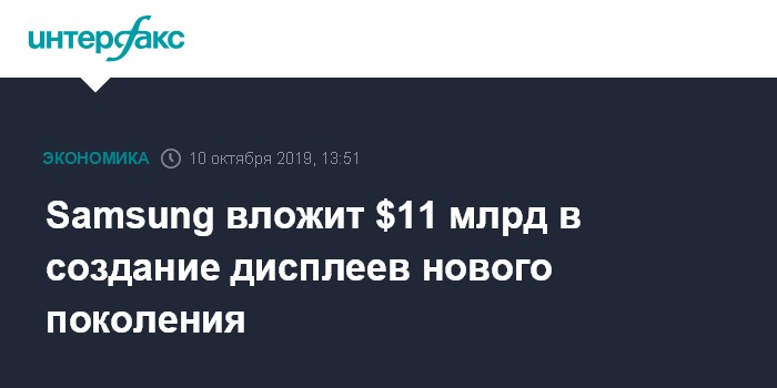 Москва. 10 октября. INTERFAX.RU - Южнокорейская Samsung Display Co. планирует потратить 13,1 трлн вон ($11 млрд) на разработку и производство дисплеев нового поколения в условиях растущего давления со стороны китайских конкурентов, сообщает агентство Bloomberg.