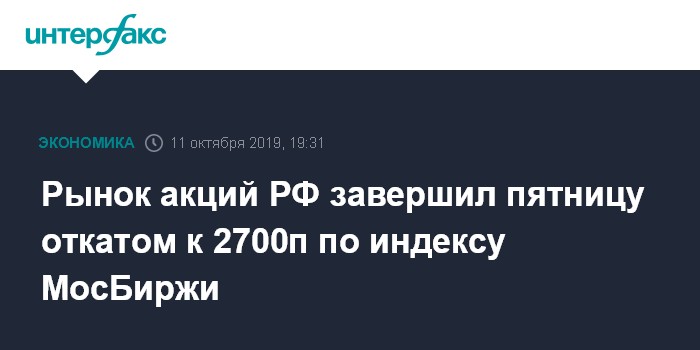 Рынок акций РФ завершил пятницу откатом к 2700п по индексу МосБиржи