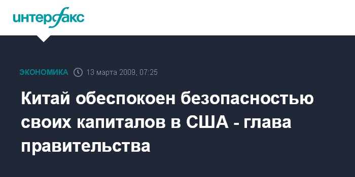 Пекин. 13 марта. ИНТЕРФАКС-КИТАЙ - Китай проявляет озабоченность по поводу безопасности своих активов на американском рынке, заявил премьер Госсовета КНР Вэнь Цзябао.