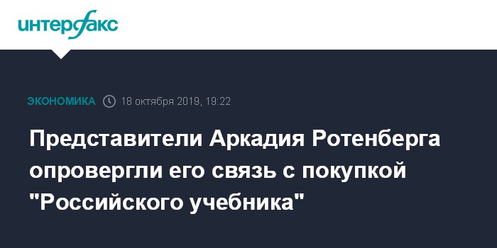 Москва. 18 октября. INTERFAX.RU - В окружении Аркадия Ротенберга опровергли появившуюся в СМИ информацию о его связи со сделкой по покупке у "Эксмо-АСТ" группы издательств "Российский учебник".