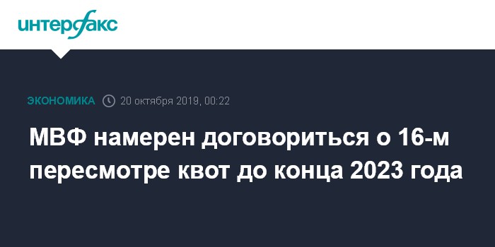 МВФ намерен договориться о 16-м пересмотре квот до конца 2023 года