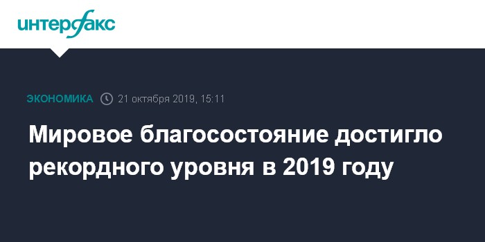 Мировое благосостояние достигло рекордного уровня в 2019 году