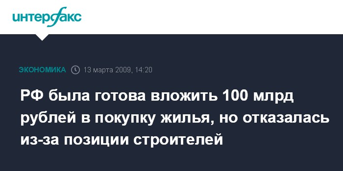 РФ была готова вложить 100 млрд рублей в покупку жилья, но отказалась из-за позиции строителей