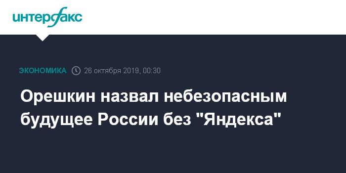 "Я не представляю себе будущего нашей страны без таких компаний, как "Яндекс". Будущее за компаниями цифровой экономики, а не традиционными секторами. Это очевидно, понятно и бесспорно. Если такие компании будут испытывать проблемы, это означает, что будущее у нас будет не настолько хорошим, насколько бы нам хотелось", - сказал Орешкин в интервью РБК, отвечая на вопрос об отношении к законопроекту об ограничении доли иностранного владения в значимых IT-ресурсах.
