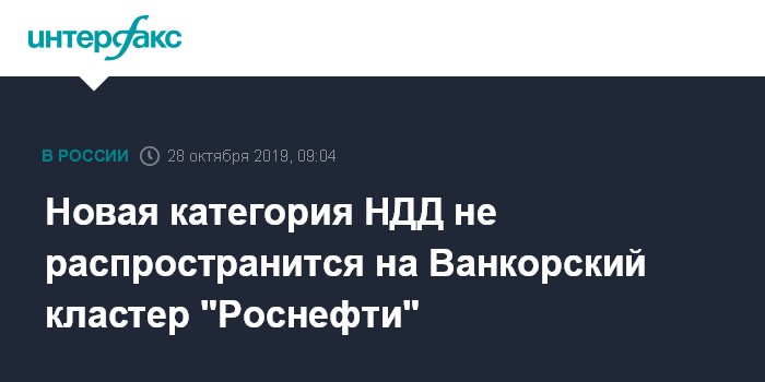 На Ванкорский кластер "Роснефти", где уже идет добыча, новая категория НДД не распространится, добавил он.