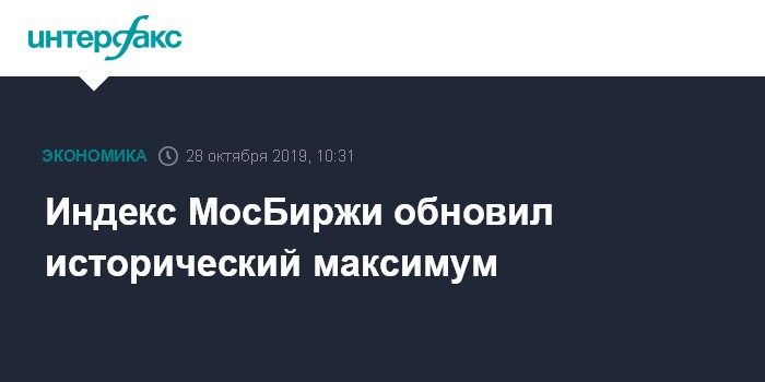 Москва. 28 октября. INTERFAX.RU - Рынок акций РФ открылся в понедельник ростом цен blue chips на фоне позитивных сигналов с внешних торговых площадок благодаря новостям о продвижении переговоров США и Китая на пути к торговому соглашению; индексы РТС и МосБиржи за минуту торгов прибавили 0,3-0,4%, причем второй обновил исторический максимум.