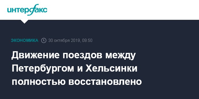 Москва. 30 октября. INTERFAX.RU - Железнодорожное сообщение между Хельсинки и Санкт-Петербургом полностью восстановлено, сообщил финский оператор электропоездов "Аллегро", госкомпания VR. Движение прерывалось из-за обрыва электропроводов между Луумяки и Вайниккалой.