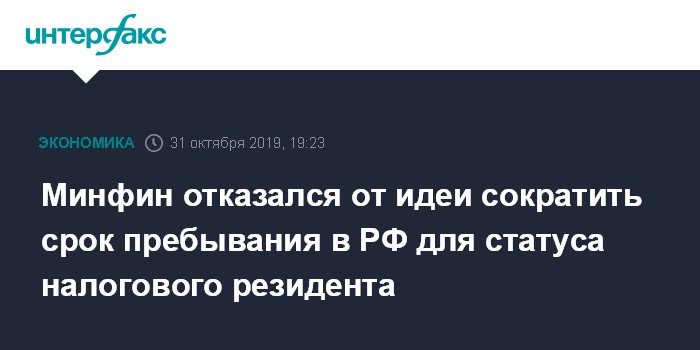 Москва. 31 октября. INTERFAX.RU - Российские власти отказались от напугавшей бизнес идеи сократить срок пребывания в РФ для присвоения статуса налогового резидента с полугода до трех месяцев.