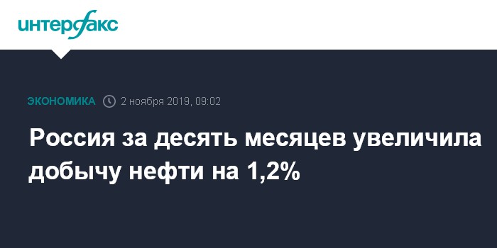 Россия за десять месяцев увеличила добычу нефти на 1,2%