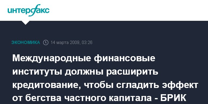 Международные финансовые институты должны расширить кредитование, чтобы сгладить эффект от бегства частного капитала - БРИК