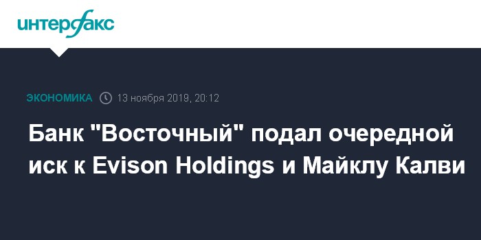 Банк "Восточный" подал очередной иск к Evison Holdings и Майклу Калви