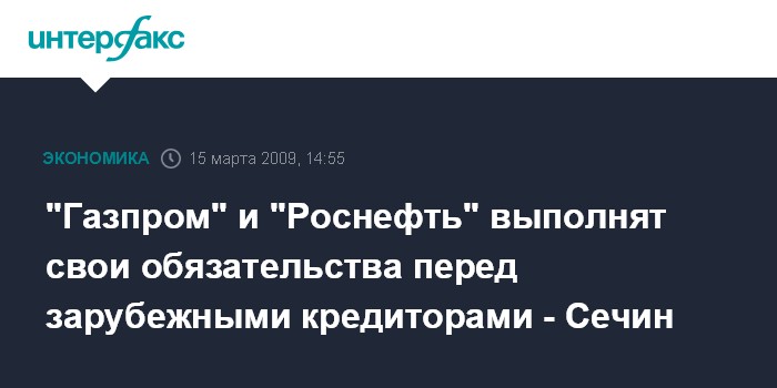 "Газпром" и "Роснефть" выполнят свои обязательства перед зарубежными кредиторами - Сечин