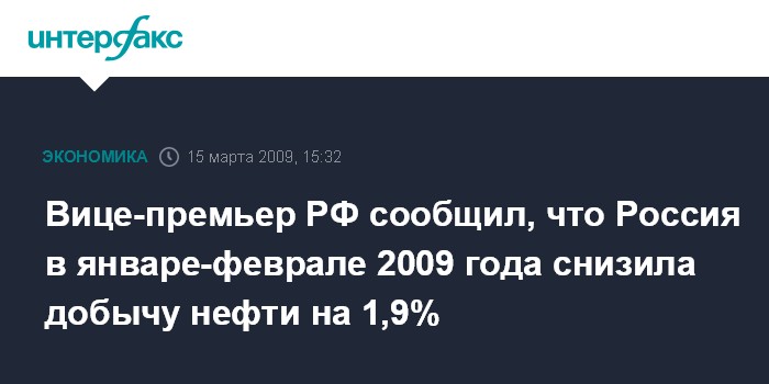 Вице-премьер РФ сообщил, что Россия в январе-феврале 2009 года снизила добычу нефти на 1,9%