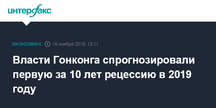 Согласно новому прогнозу, экономика специального административного района КНР в этом году снизится на 1,3% - это будет первая рецессия с 2009 года. Ранее власти прогнозировали годовой рост ВВП на 0-1%.