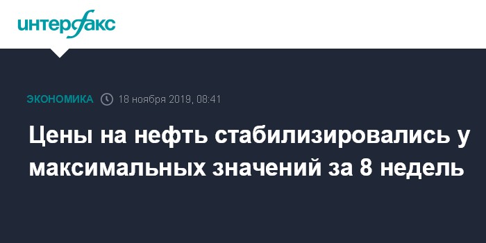 Москва. 18 ноября. INTERFAX.RU - Цены на нефть стабильны в понедельник и держатся у максимумов за восемь недель, благодаря позитивным новостям о ходе торговых переговоров США и Китая.