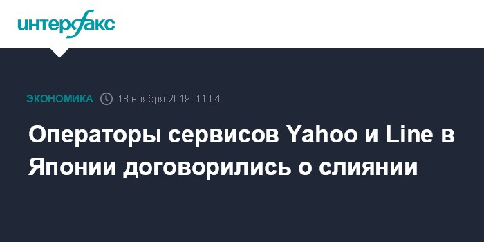 Москва. 18 ноября. INTERFAX.RU - Операторы интернет-портала Yahoo Japan и популярного мессенджера Line достигли соглашения о слиянии, предусматривающего выкуп акций Line стоимостью порядка $3,1 млрд у миноритарных акционеров.
