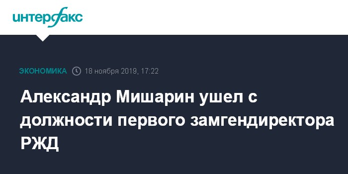 11 ноября Мишарин подтвердил, что решил уйти из компании и считает свою задачу в РЖД выполненной. Он добавил, что хочет заняться здоровьем, а затем определится, что будет делать дальше. Ему 60 лет.
