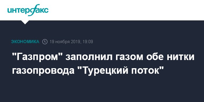 "Газпром" заполнил газом обе нитки газопровода "Турецкий поток"