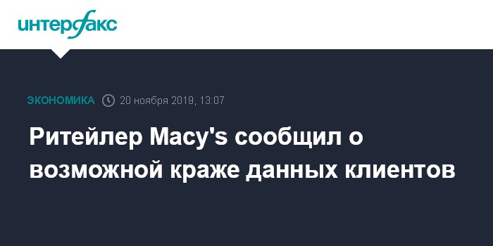 Москва. 20 ноября. INTERFAX.RU - Американский ритейлер Macy's сообщил о хакерской атаке на свой сайт, в результате которой могли был украдены данные небольшого числа клиентов компании. Об этом пишет The Wall Street Journal.
