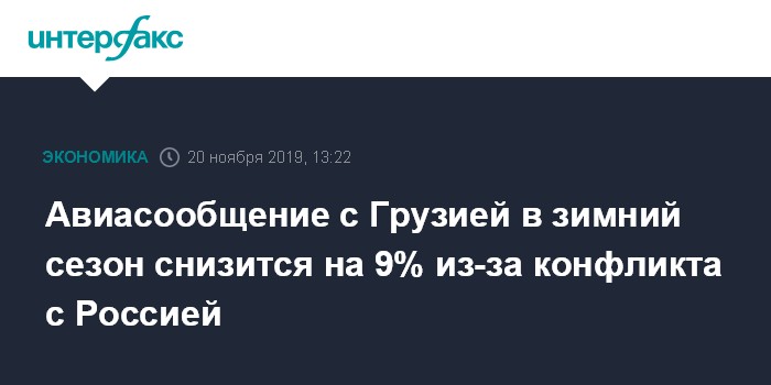 Авиасообщение с Грузией в зимний сезон снизится на 9% из-за конфликта с Россией