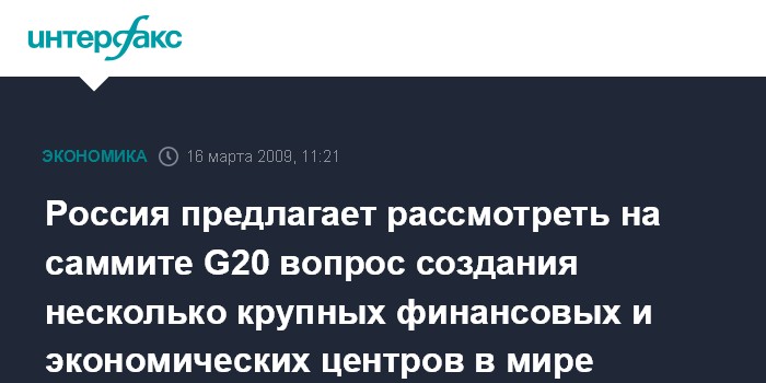 Москва. 16 марта. INTERFAX.RU - В мире необходимо создать несколько крупных финансовых и экономических центров, говорится в предложениях РФ к лондонскому саммиту G20,размещенных на сайте Кремля в понедельник.