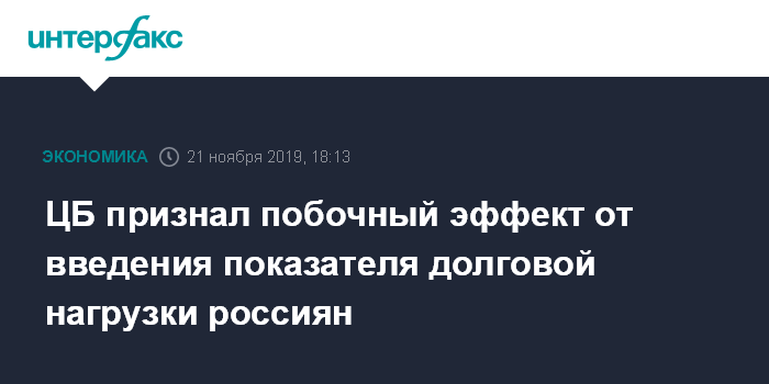 ЦБ признал побочный эффект от введения показателя долговой нагрузки россиян
