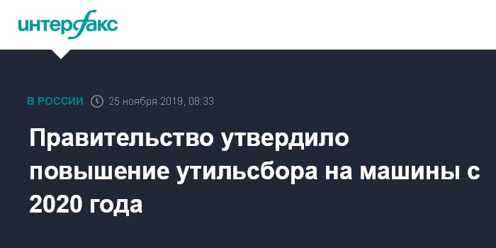 Правительство утвердило повышение утильсбора на машины с 2020 года