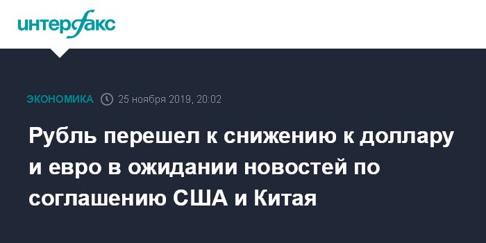 Рубль перешел к снижению к доллару и евро в ожидании новостей по соглашению США и Китая