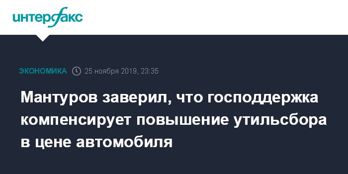 Мантуров заверил, что господдержка компенсирует повышение утильсбора в цене автомобиля