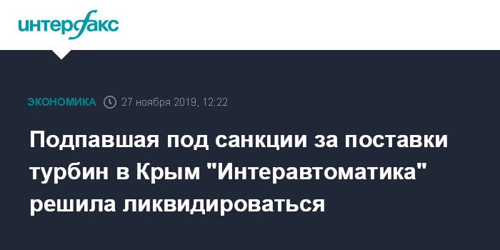 Подпавшая под санкции за поставки турбин в Крым "Интеравтоматика" решила ликвидироваться