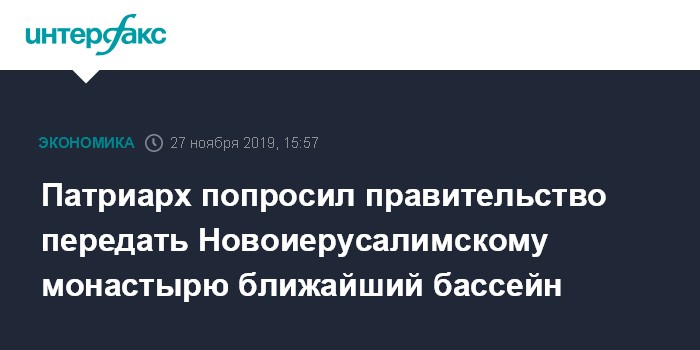 Патриарх попросил правительство передать Новоиерусалимскому монастырю ближайший бассейн
