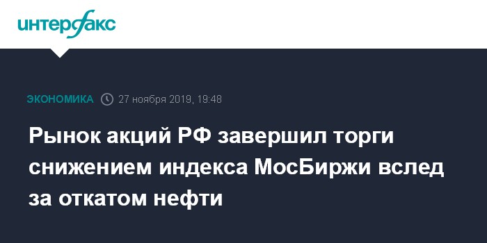 Рынок акций РФ завершил торги снижением индекса МосБиржи вслед за откатом нефти