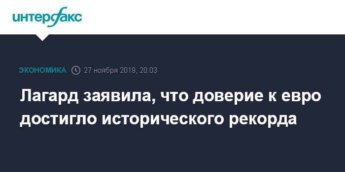 Москва. 27 ноября. INTERFAX.RU - Доверие к евро сейчас сильнее, чем когда-либо, заявила председатель Европейского центрального банка (ЕЦБ) Кристин Лагард.