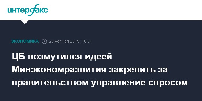 ЦБ возмутился идеей Минэкономразвития закрепить за правительством управление спросом