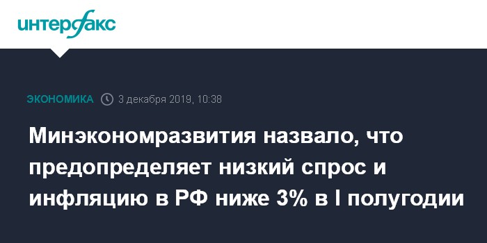 Минэкономразвития назвало, что предопределяет низкий спрос и инфляцию в РФ ниже 3% в I полугодии